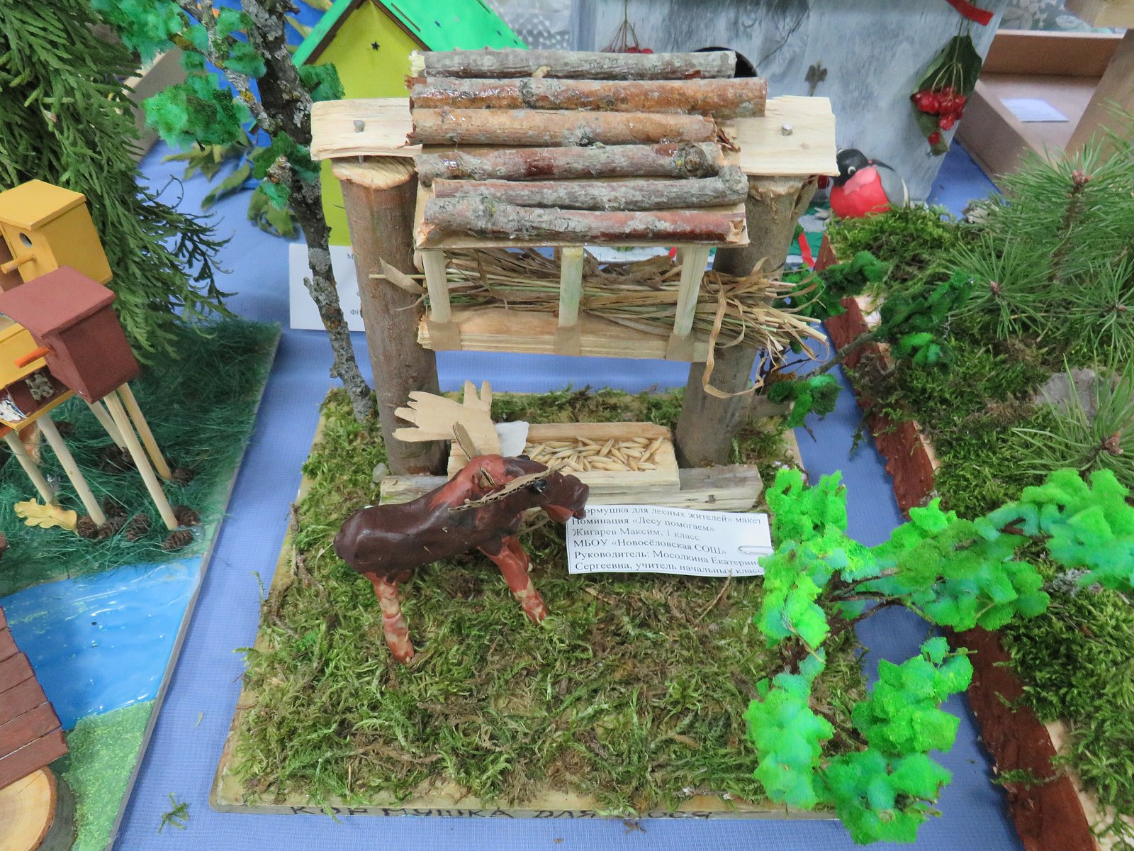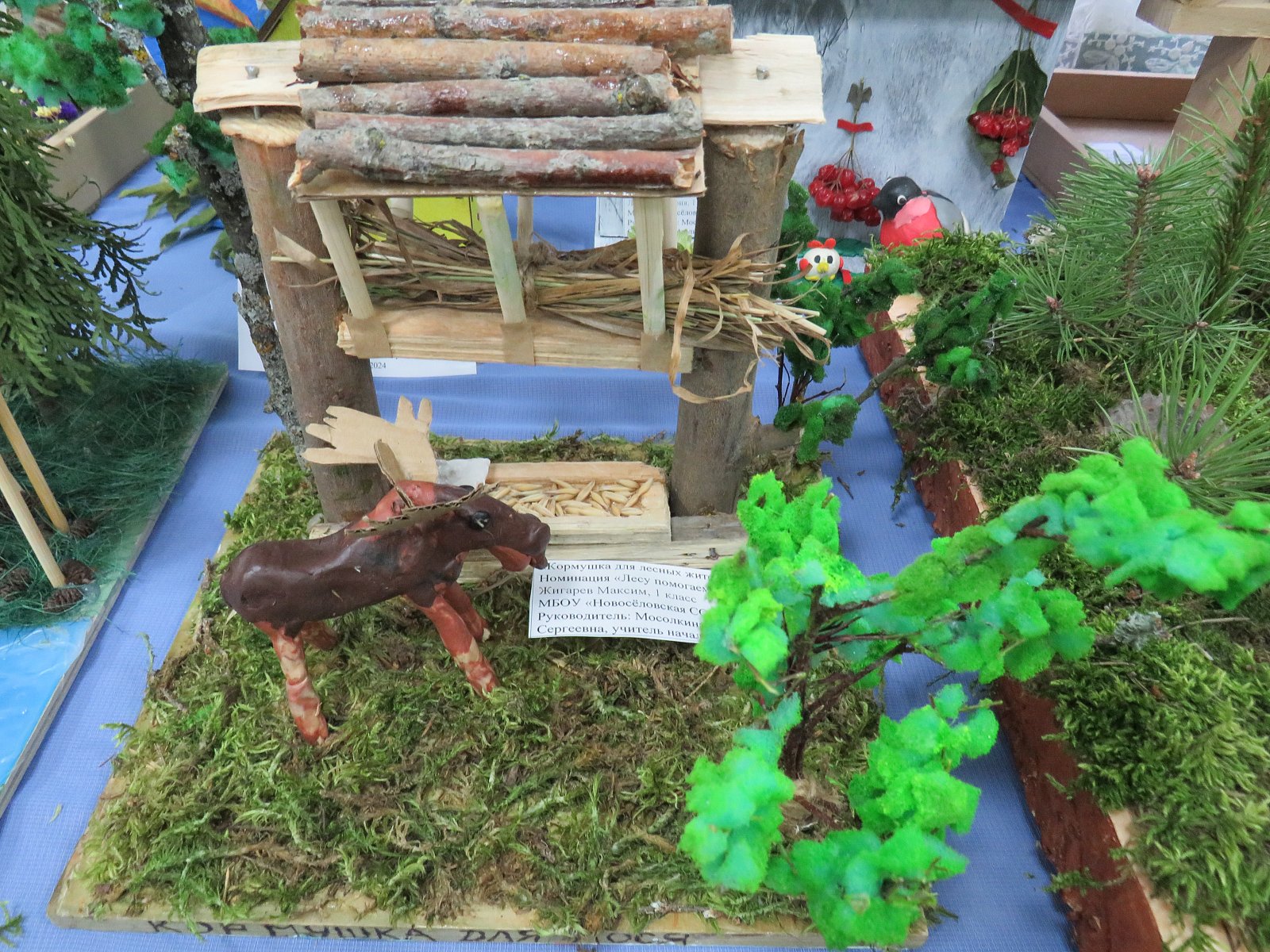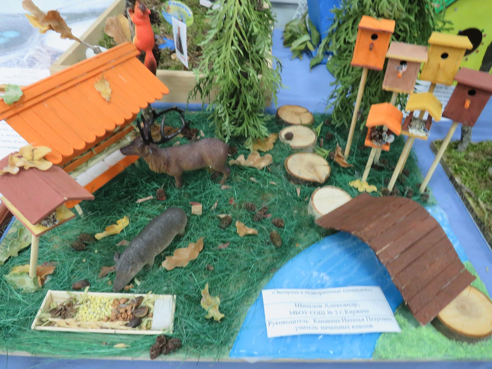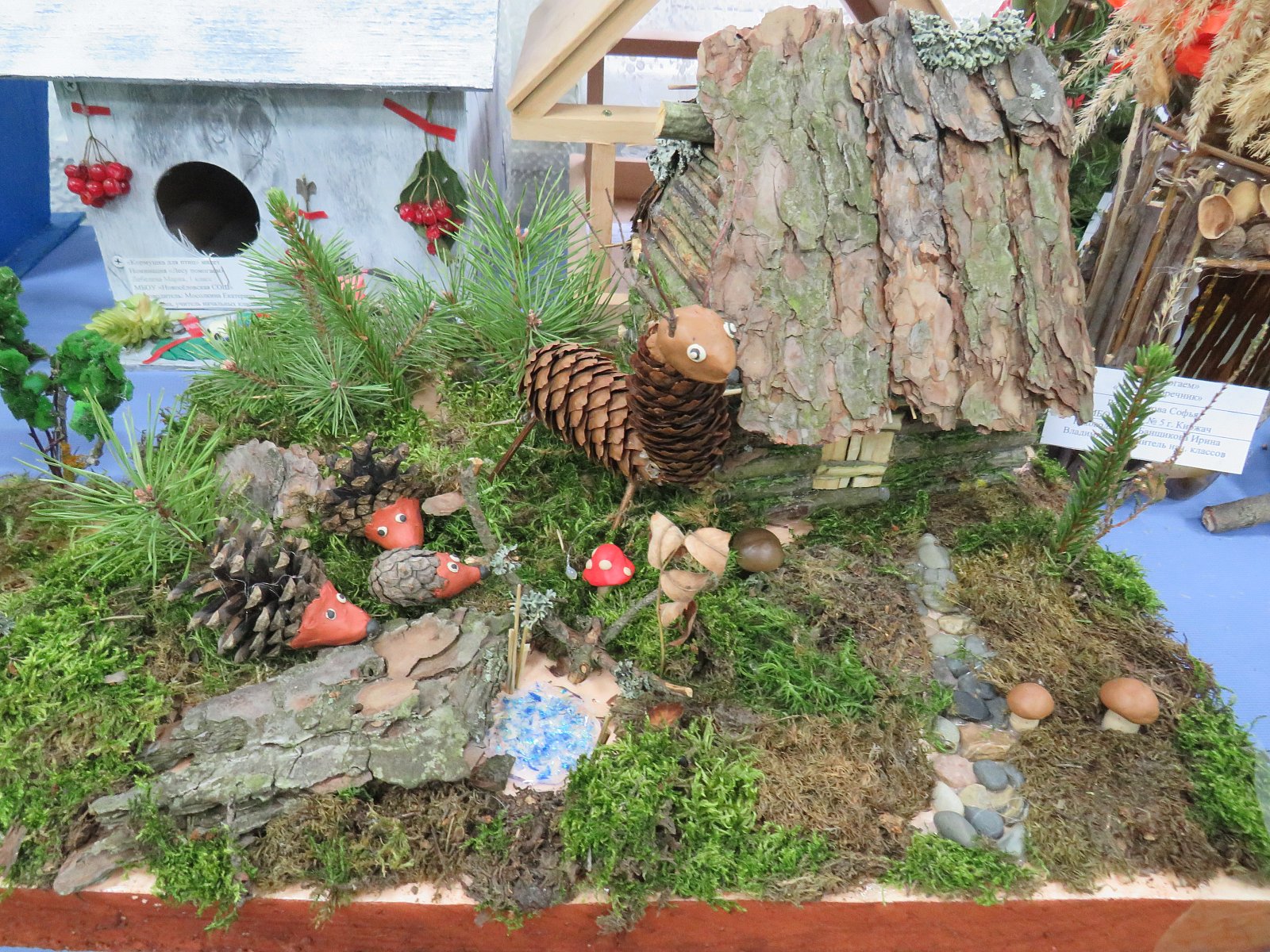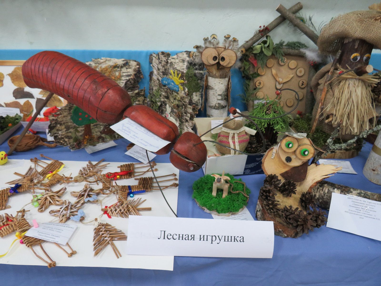 Экспозиция включает в себя макеты экологических троп и подкормочных площадок, а также оригинальные кормушки и искусственные гнездовья для птиц. Кроме того, представлены поделки и скульптуры птиц и животных Владимирской области, выполненные из природных материалов в различных техниках. Также можно увидеть муляжи грибов, изготовленные из того же сырья, и народные игрушки, выполненные из бересты, щепы и древесины.