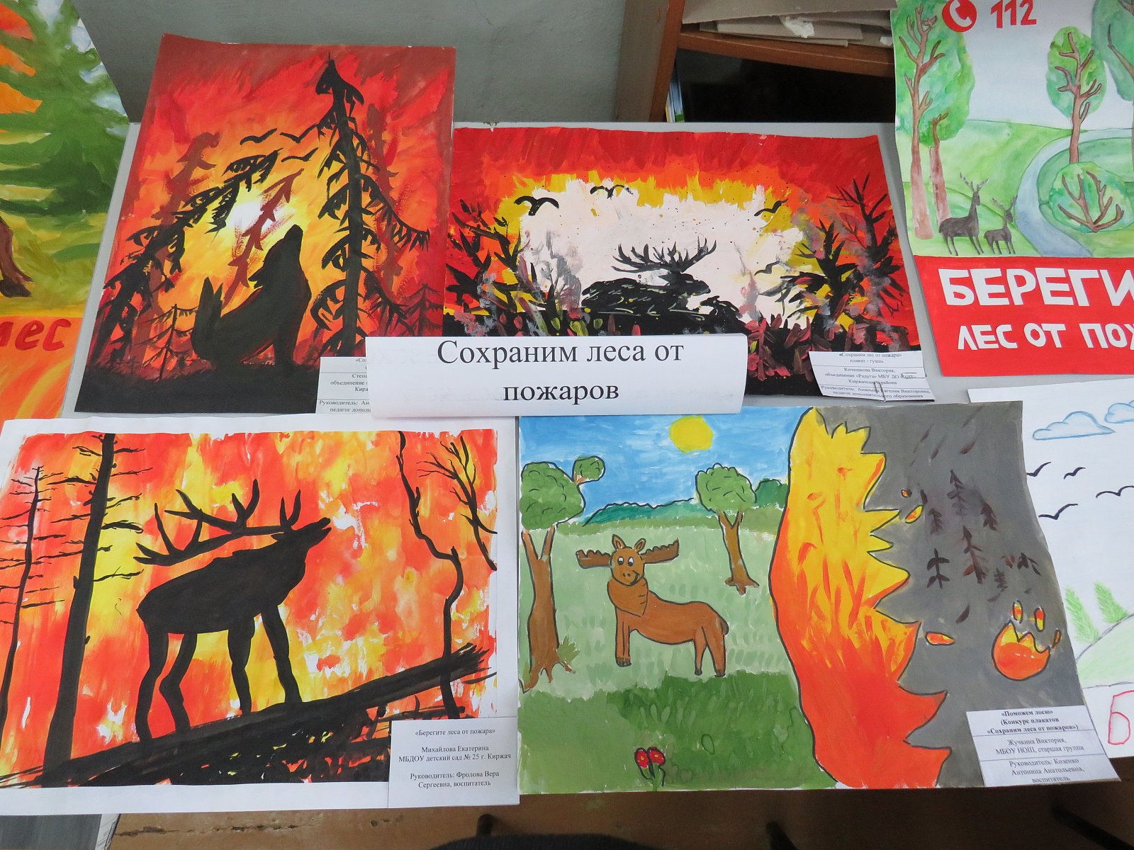 Завершают экспозицию яркие и красочные плакаты , призывающие сохранить леса от пожаров.